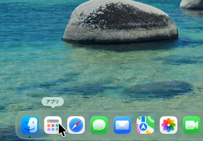Dock上のアイコンはmacOSのバージョンで変わることがあります。アイコンにマウスを合わせて表示されるツールチップの文字で確認すると確実です。