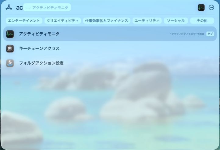 6. 検索フォームに「ac」と入力し、「アクティビティモニタ」を起動します